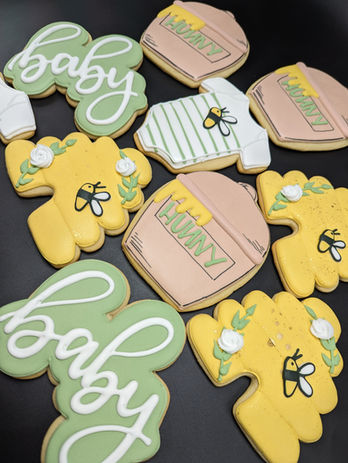 The process takes several days from start to finish, with each individual cookie taking several hours to complete. At the end of their creative process, our cookies are carefully sealed in clear, plastic packaging which protects both their taste and their design.